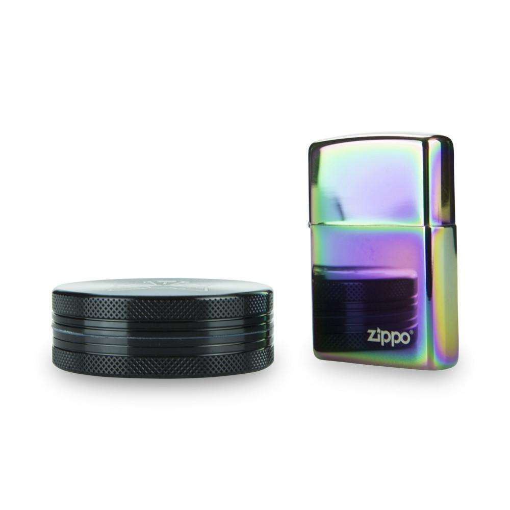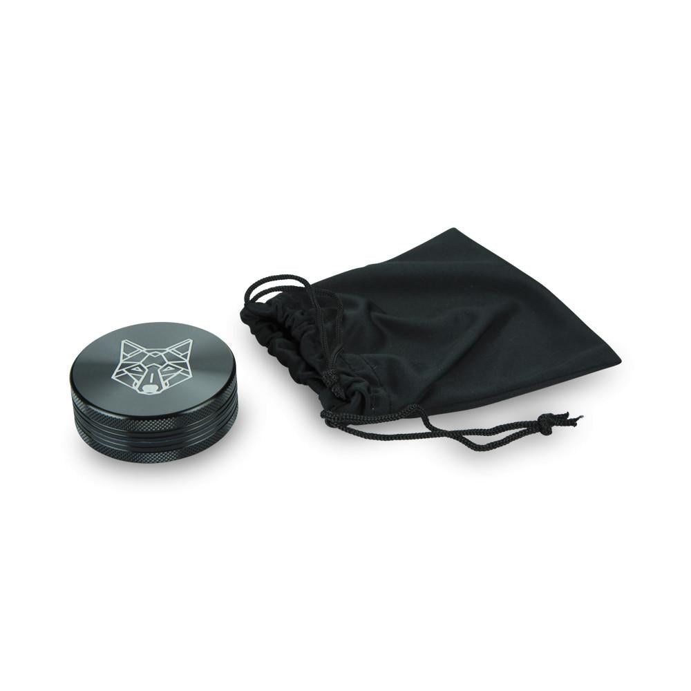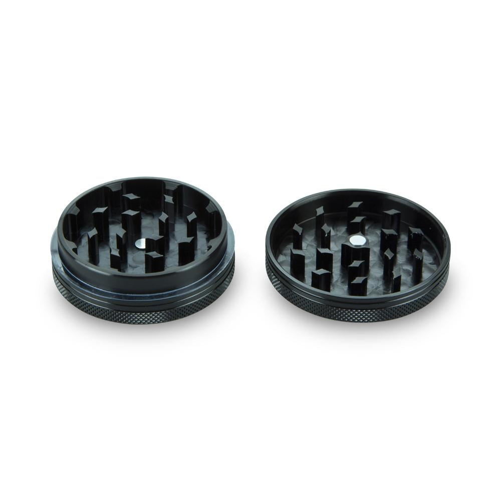 These 55mm 2-piece pocket grinders are the perfect travel companion. They have rare earth neodymium magnet to hold the two parts together and feature 28 razor-sharp cutting teeth which slice their way through your material like a hot knife through butter. The anodized aluminum will stand up to pretty much anything you can throw at it and it comes with a little velvet carry pouch to keep it clean and tidy.