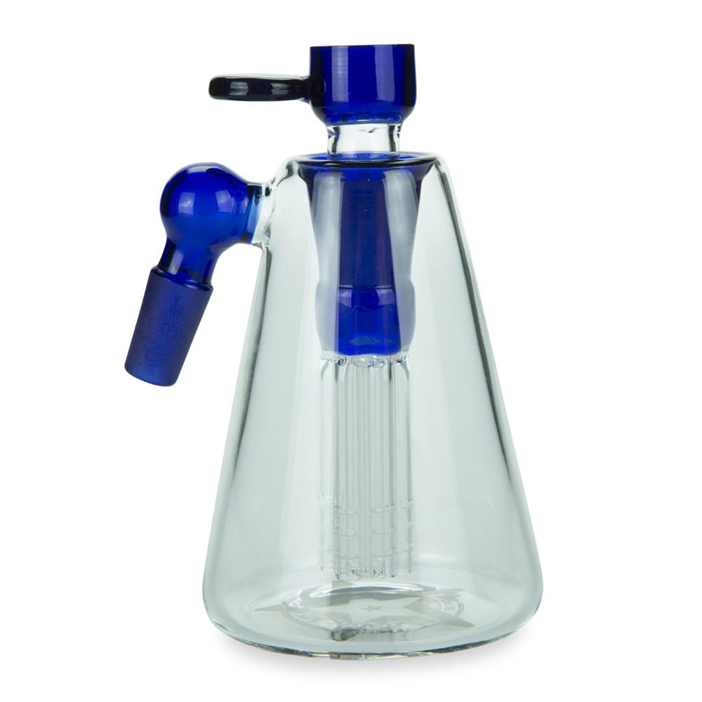 This one in particular use an 18.8mm female joint in the top which then has a diffuser down stem attached which has a 6-Arm Tree perc at it's base to really break up those bubbles as quickly as possible. The smoke then rises up to the top and gets pulled down the 14.4mm male fitting into your bong. Blaze Glass also include an 18.8mm male bowl to match the joint in the top of the ashcatcher.